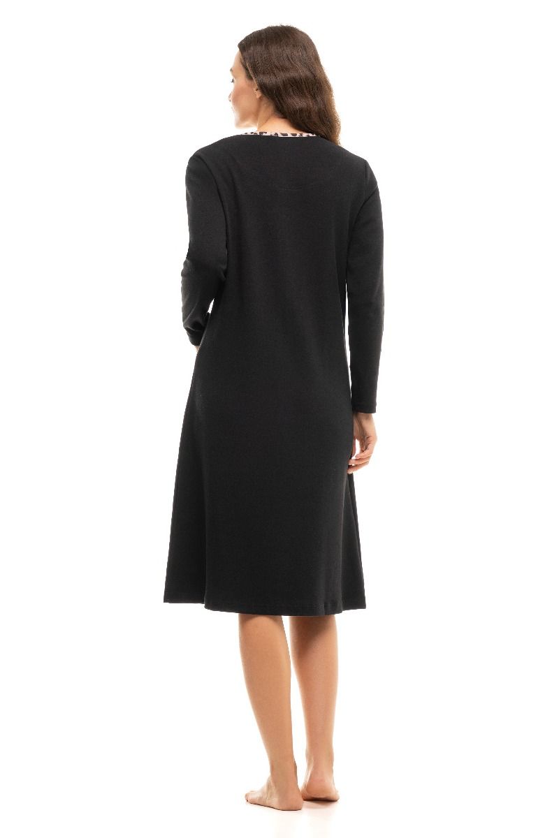 Γυναικείο βαμβακερό νυχτικό από 100% βαμβακερό ύφασμα. Με λεοπάρ λεπτομέρειες στην λαιμόκοψη και μήκος μέχρι το γόνατο.