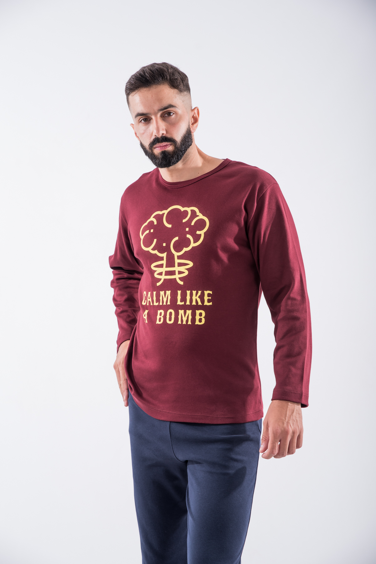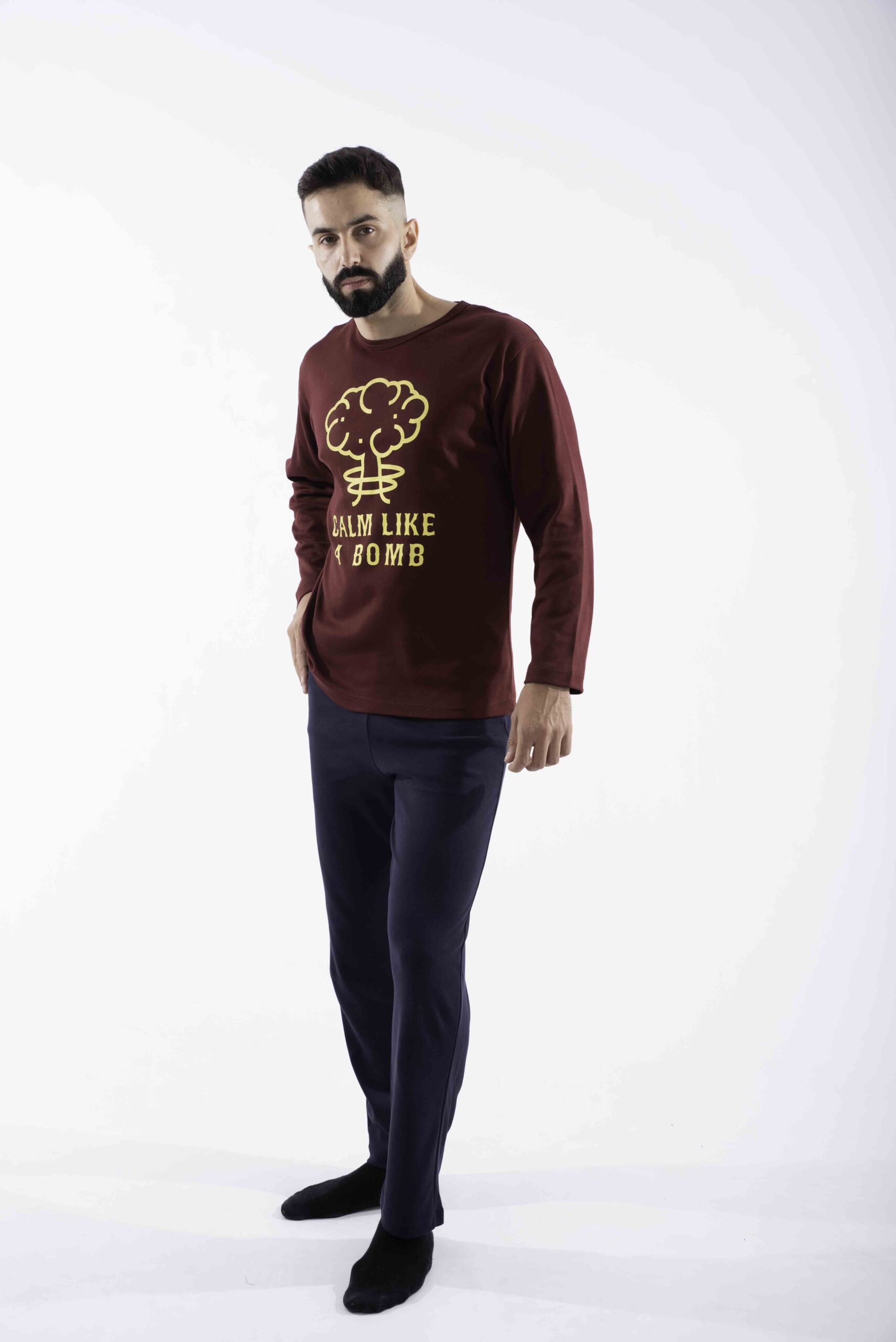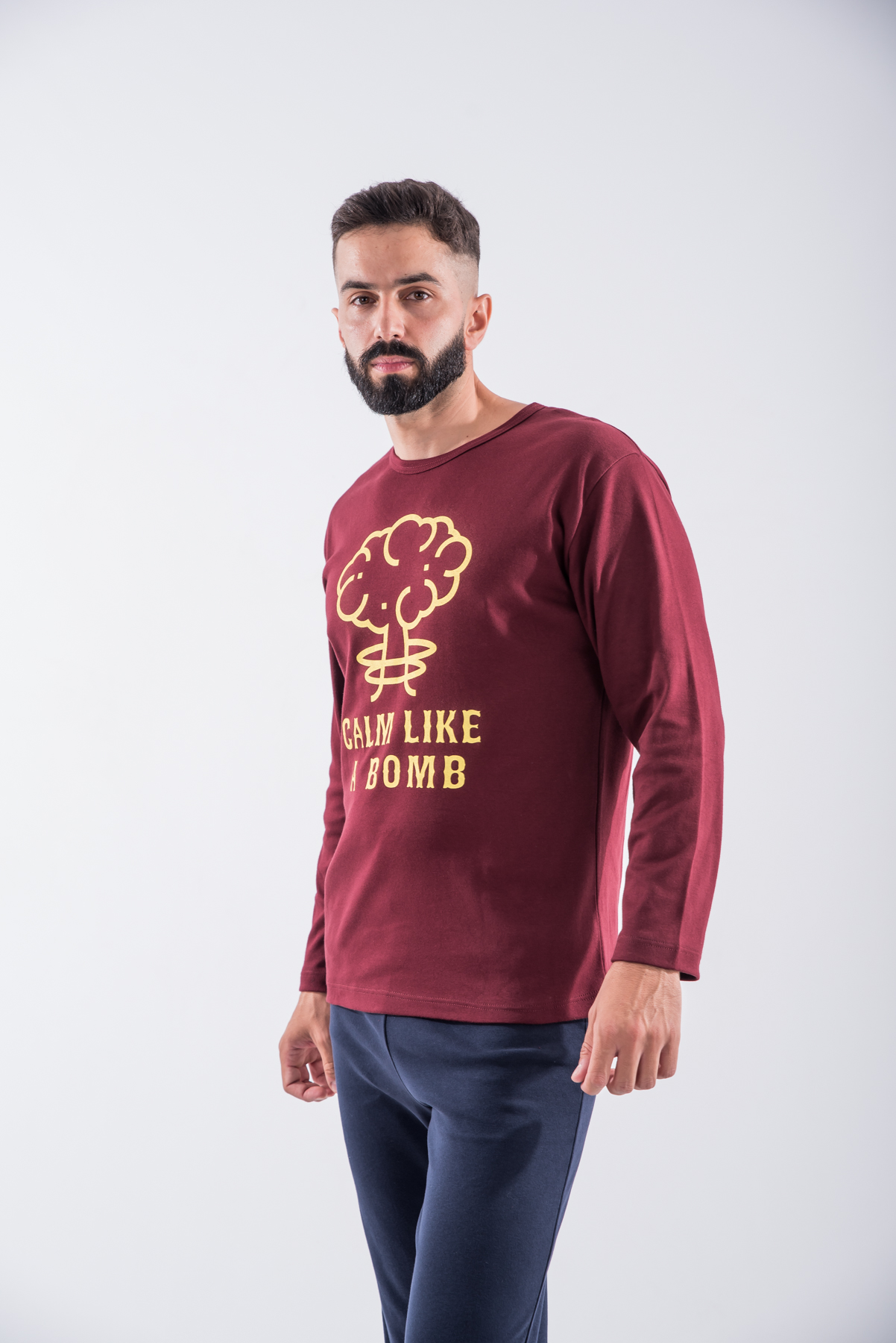 Calm like a Bomb Μπορντό Ανδρική Χειμερινή Πιτζάμα