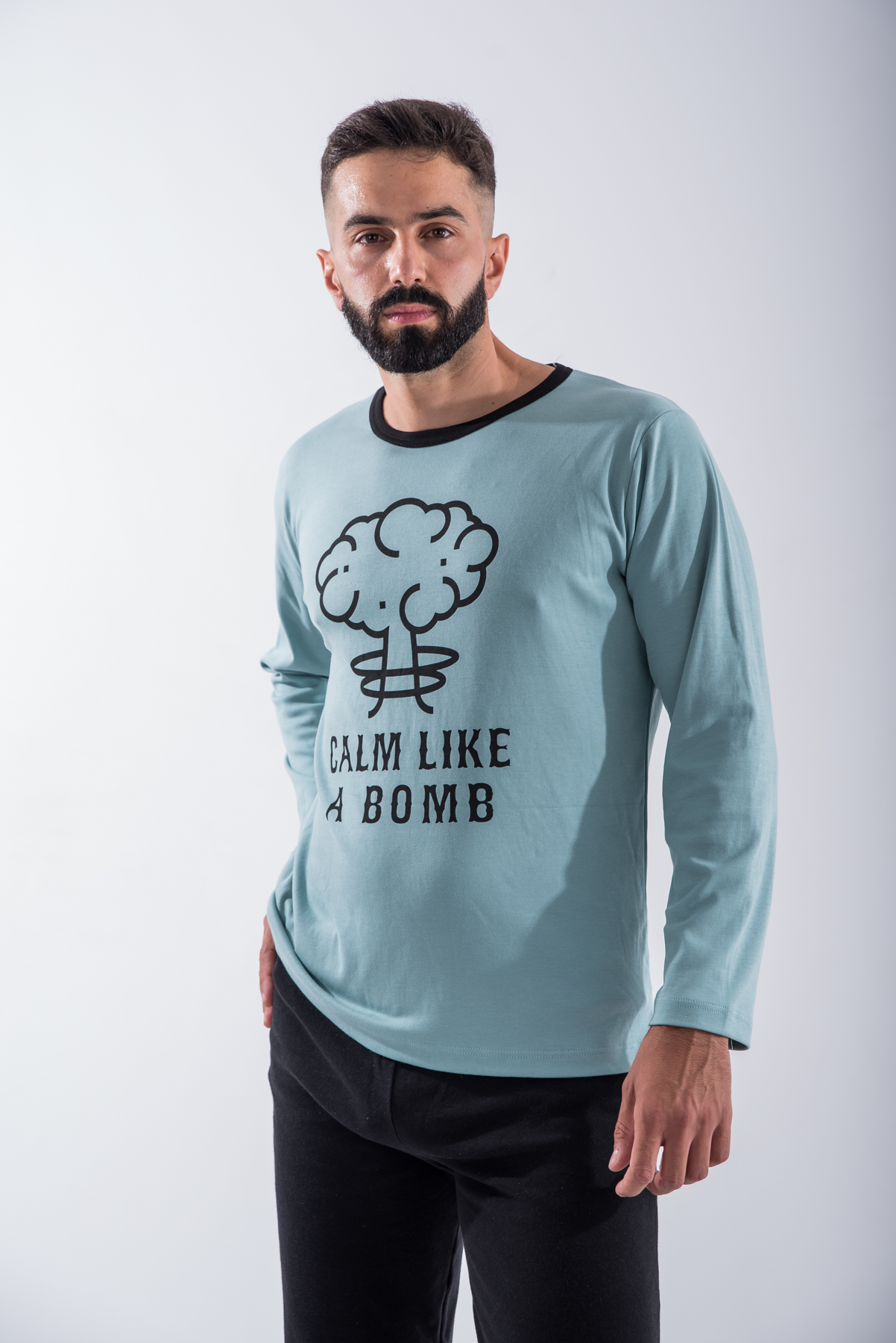 Calm like a Bomb Γαλάζιο Ανδρική Χειμερινή Πιτζάμα