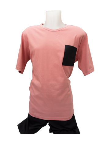 Καλοκαιρινή πιτζάμα με μπλούζα σε απόχρωση σάπιου μήλου με τσέπη, σε άνετη γραμμή με μαύρο μακρύ παντελόνι.