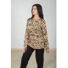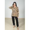 Γυναικεία πιτζάμα από 100% βαμβακερό ύφασμα. Το σετ περιλαμβάνει μακρυμάνικη μπλούζα με animal print σε μπεζ χρώμα και μακρύ μαύρο παντελόνι.
