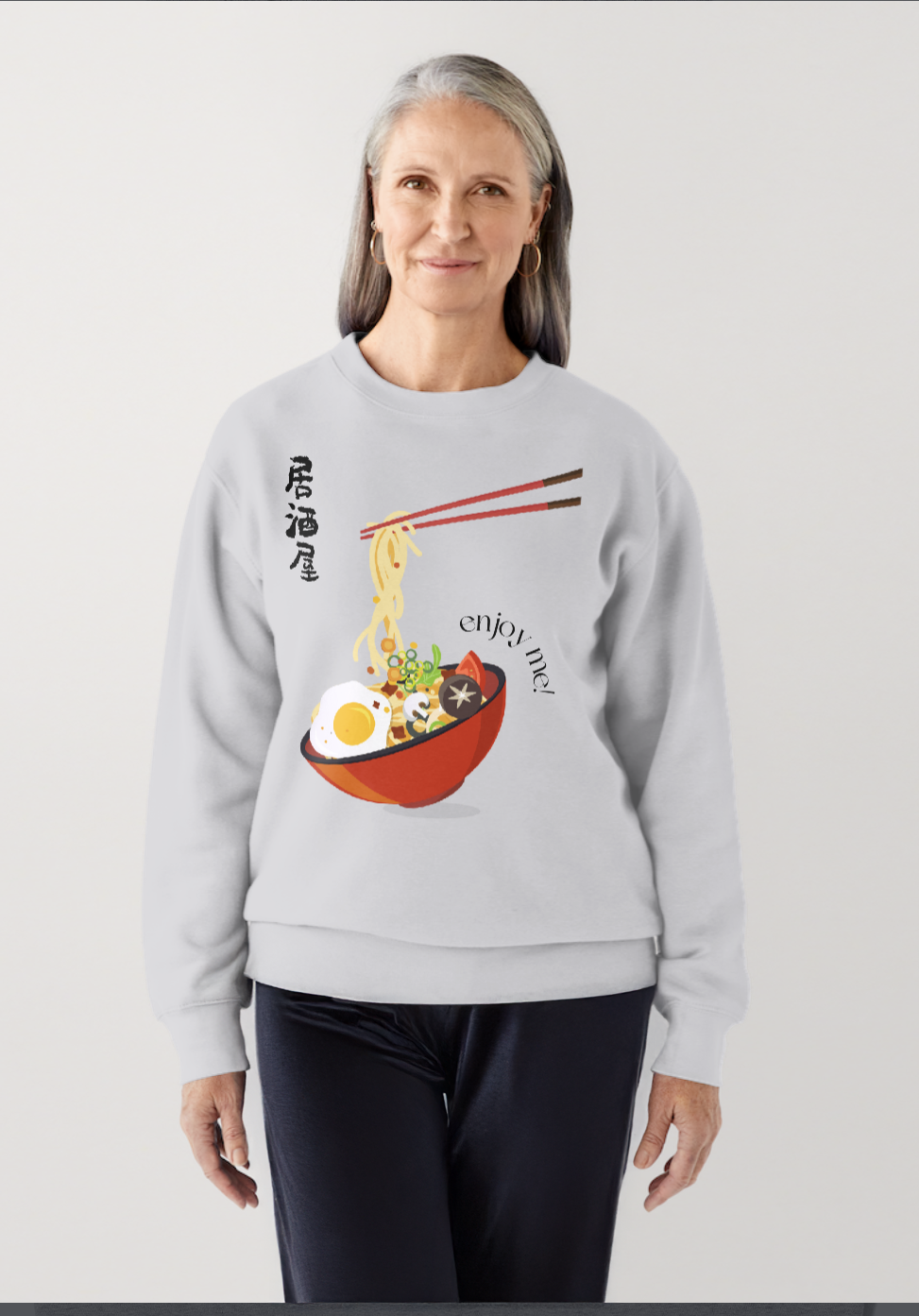 Μπλούζα μακρυμάνικη σε γκρι απόχρωση με στάμπα ramen