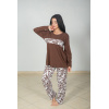 Γυναικεία καλοκαιρινή πιτζάμα από 100% βαμβακερό ύφασμα. Το σετ περιλαμβάνει μακρυμάνικο μπλουζάκι και μακρύ παντελόνι σε καφέ και λευκές αποχρώσεις με σχέδιο animal print .