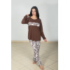 Γυναικεία χειμερινήπιτζάμα από 100% βαμβακερό ύφασμα. Το σετ περιλαμβάνει μακρυμάνικο μπλουζάκι και μακρύ παντελόνι σε καφέ και λευκές αποχρώσεις με σχέδιο animal print .